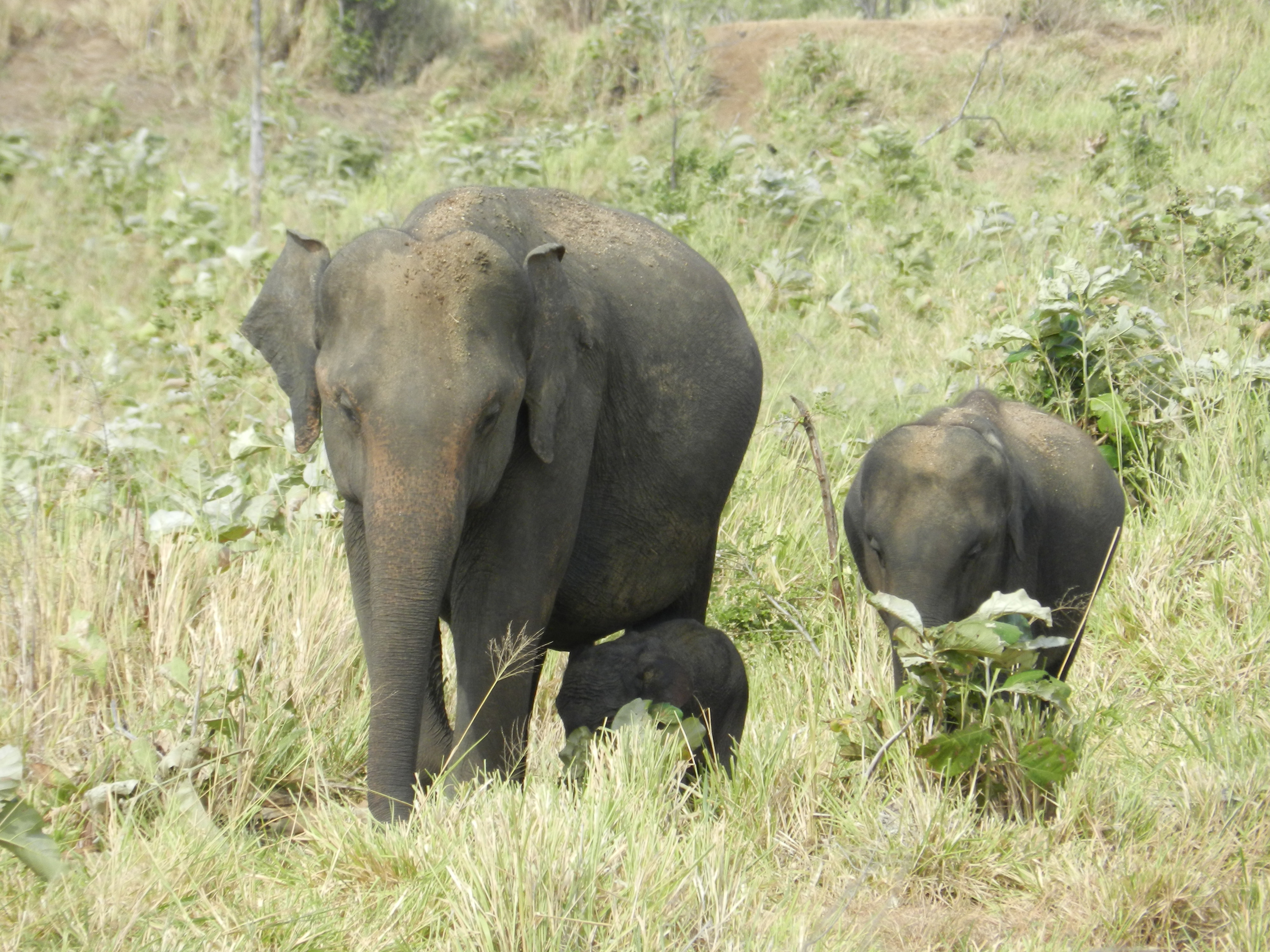 In my four weeks here in Uda Walawe I’ve delighted in my focal studies on the calves and their trunkie pals. I’m proud that my proficiency at IDing the adult females is improving and on the rare occasion I can ID a calf before I ID its mother! However, when there’s a big group with multiple calves running all over the place, I rely quite heavily on videoing the focal calf for my study so I can go over its behaviour again later. This is an extremely handy tool to have when your subject calf is far away, playing with its body double, of a similar age. When the two wrestling calves disappear behind a shrub or two and re-emerge, the video footage can help support my hunch that they played a trick on me and switched places for fun!