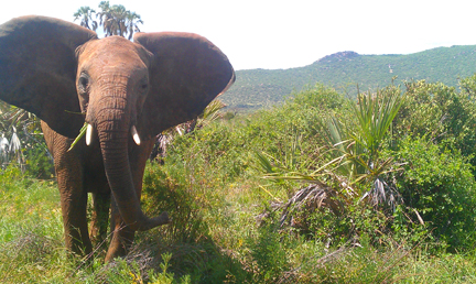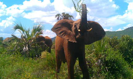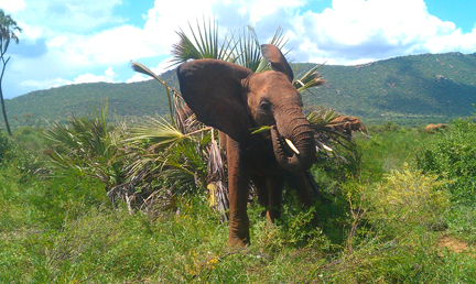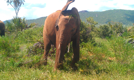 The Planets walked into this commotion, with Europa in the lead along with two little babies and a few older calves. At first Europa stopped dead, but then suddenly it seemed she caught the excitement as well. A full grown adult with no dependent calves of her own, she started behaving as flamboyantly as these teenagers. She ran smack into a bush and disappeared into it, shaking up a frenzy. The objects of her attention, meanwhile, wandered off so that when she poked her head out again there was no one watching. This didn’t stop her, as she ran off in another direction. The rest of her group was also in on the action now, and even the tiny tots were chasing one another back and forth.