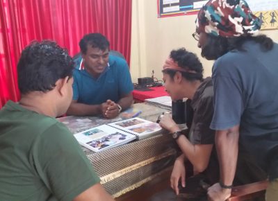 The first stop was with Ms. Lakmini of Pubudu Pre-school. The previous year she had managed to collect just Rs. 200 (amounting to $1.25) per student, for the thirty or so students in the class. The fact that parents chose to put their children in pre-school at all with whatever little means they had, when they could have merely left them to their own devices, spoke volumes to us about the emphasis on education among these communities. They did not have a building of their own, and met at the local community hall. Our support would go towards providing them desks and chairs, a safe drinking water supply, and laying foundations for a new building. We paused for a traditional offering of tea, bananas, and a lovely home-made sesame seed sweet.