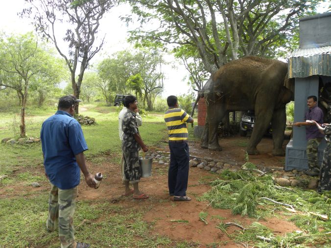 On a personal note, we live within an elephant habitat and have come to know several wild elephants that visit our premises. One such was Rivaldo who was treated by veterinary doctors of the Forest Department on two different occasions across from our verandah for injuries, the first of which was caused by people. Rivaldo became quite used to the sugarcane, and watermelon he was fed, to distract him from the treatment. He was a very friendly and docile elephant, albeit quite large. He used to visit the neighbouring villages where he was fed by tourists or helped himself to bananas from the shops. The Forest Department was pondering whether to capture him and shift him to the elephant camp they maintain at Mudumalai Tiger Reserve. We were concerned about this move. Fortunately we had maintained a database of his visits to the house after the treatment was over. Analysing the data, we found that after the feeding was stopped, Rivaldo visited less and less frequently and finally went back to jungle fare. We published a paper in Gajah (15), which was used by forest personnel to discourage people from feeding Rivaldo so that he could return to the wild. He is still a free ranging elephant, still a problem with being illegally fed by tourists, but we hope he will remain free [see related blog posts here and here about Rambo, Udawalawe’s original beggar].