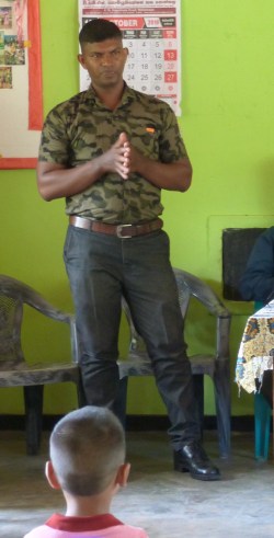 In the morning we received a gracious welcome at Nirmala Sigithi preschool from Ms. Madushani, the teacher. Following long speeches by both Naveen and Ms. Madushani, the families spoke up. Because the building doubled as a meeting place for the farmer’s association, the head of which was in attendance, Naveen was on the spot for answering questions about perceived inadequacies in the system for compensating wildlife damage. Luckily, the positive mood created by the occasion kept the discussion civil and demonstrated to us the value of providing the more of such opportunities for communities to interact with wildlife personnel. Moreover, we were impressed that despite cultural expectations, both senior representatives of the farmers’ association happened to be women. The meeting wrapped up with a song sung by one of the children, followed by a remarkable breakfast prepared by the teacher and community members.