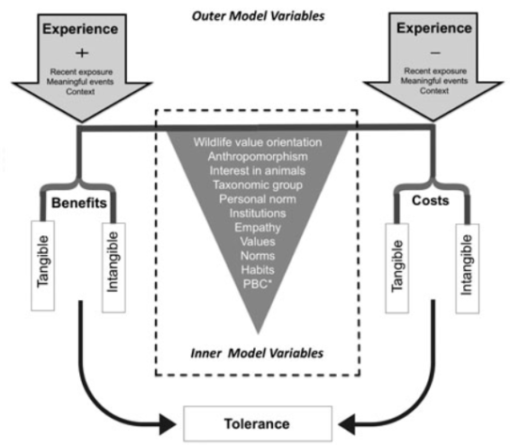 The Wildlife Tolerance Model [2] by Kansky and colleagues, proposes inner and outer components that together govern what one may call “tolerance” of wildlife. This is the conceptual framework used by Saif and colleagues for their study.