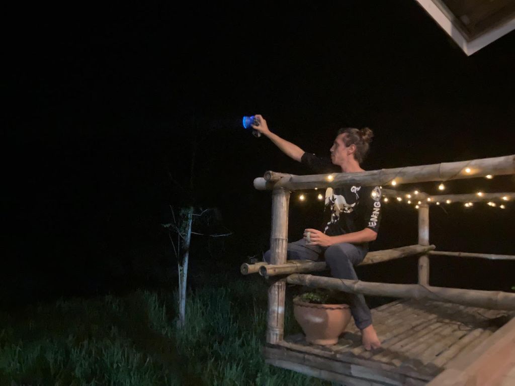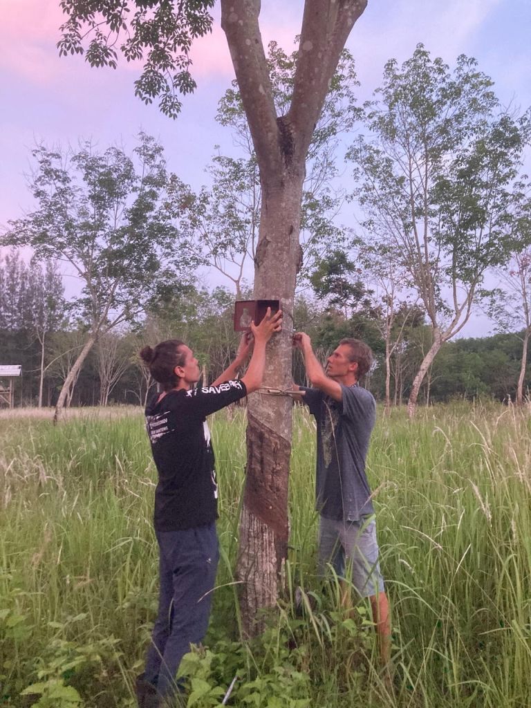 The camera traps and transect tape were erected around dusk and the group was going to head back to David’s house (which can be seen close by in the distance) for dinner and return to the tree to start trialing the camera traps once dark. Before leaving it was briefly discussed if the camera trap should be turned on but decided against it as it would still be typically too early for the elephants to come out (they like to come out well after 10pm). David also mentioned that they hadn’t seen the elephants in quite some time.