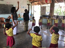 Our next stop was school teacher Shiromi’s home. We met with Shiromi who greeted us with her family and offered the most amazing homecooked treats. We chatted about her work in the village and her school, Dimuthu preschool. We met with Shiromi again the following day, where we observed the children in her classroom. The parents were very supportive of Shiromi and came to the school with their children even though they were supposed to be on holiday. We got to sing and dance the “hokey pokey”.