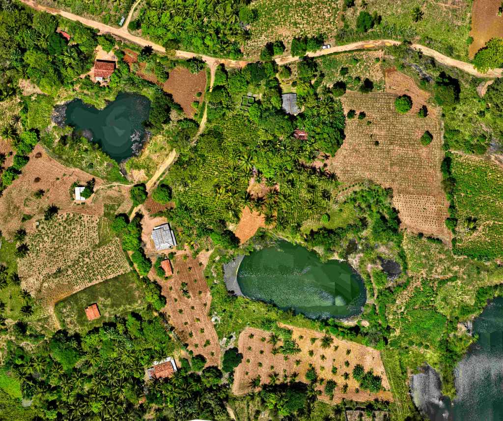 These different historical trajectories have shaped distinct landscape patterns. Sri Lankan farms form a patchwork of individual plots interspersed with houses and fragments of forest, reflecting generations of land division and management. Ruam Thai’s layout is more structured, with a centralized residential area separated from a consolidated farming zone that borders the protected area.